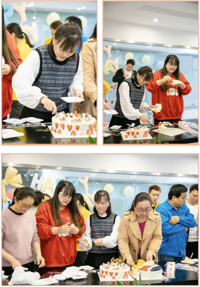 當(dāng)熟悉的《生日快樂》旋律悠然奏響,大家的歌聲相互交融,一句句真摯的 “生日快樂”互相送出。蛋糕被壽星們緩緩切開,馥郁的香甜瞬間在空氣中彌漫開來,在一片歡聲笑語里,大家接過一塊塊蛋糕,甜蜜在舌尖肆意綻放,恰似在文依一同度過的每一段溫馨時(shí)光,深深烙印在每一位伙伴的記憶深處。