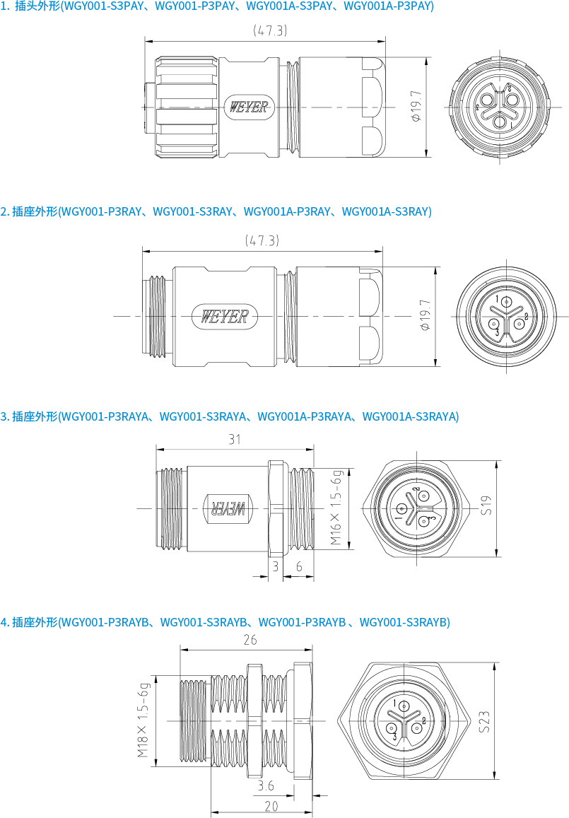 物料簡介:WGY001系列電連接器是標準化產品,對應M16系列連接器。